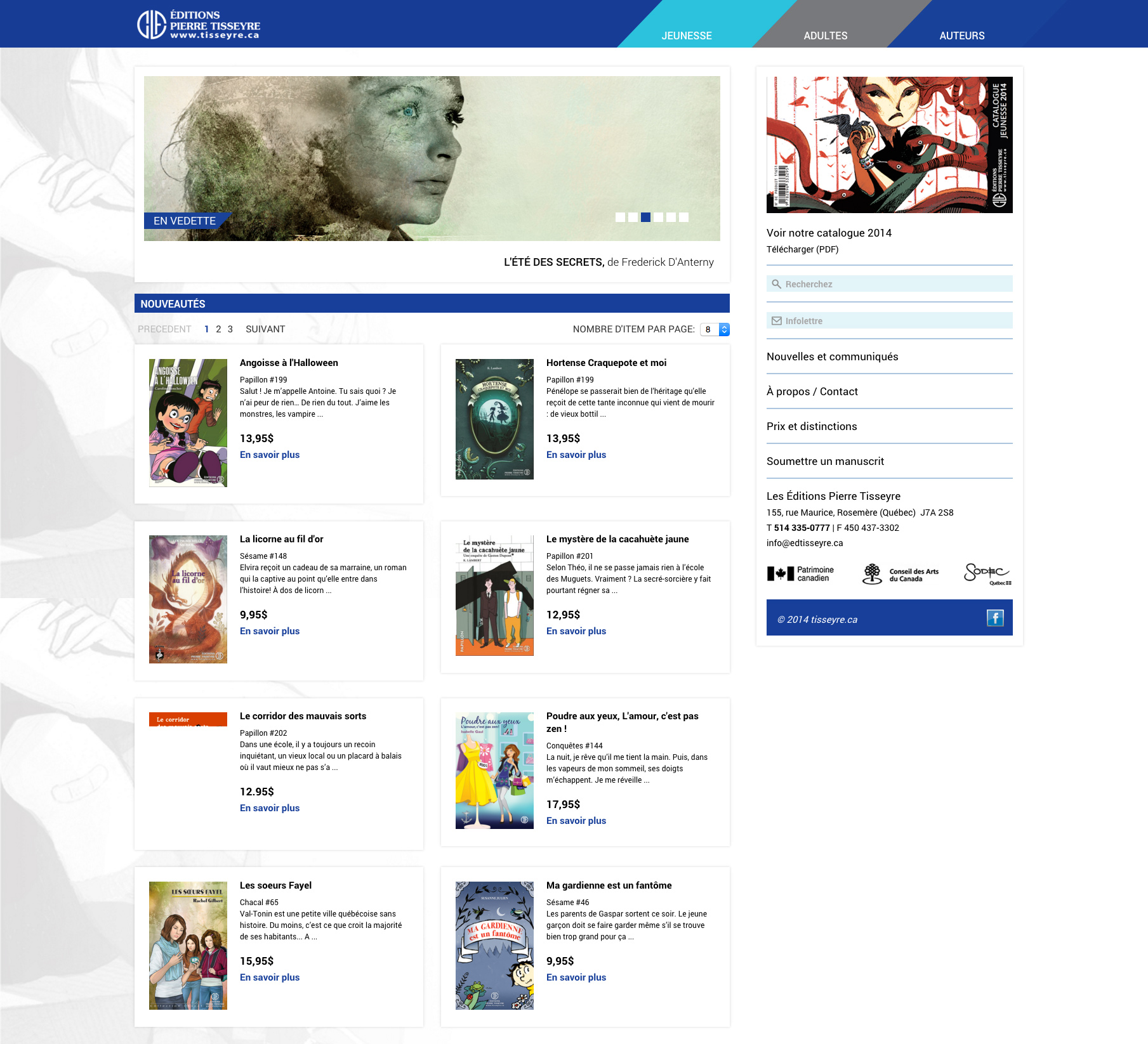 Nous avons procédé à une refonte complète du site web afin de le mettre au goût du jour. Comme tous les sites web produits par Grafikar, la nouvelle plateforme du tisseyre.ca est entièrement adaptable aux différents supports (téléphones intelligents, tablettes, ordinateurs portables et de bureaux).
